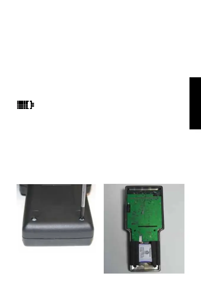 If the battery power is too low, the battery symbol ashes and the meas-