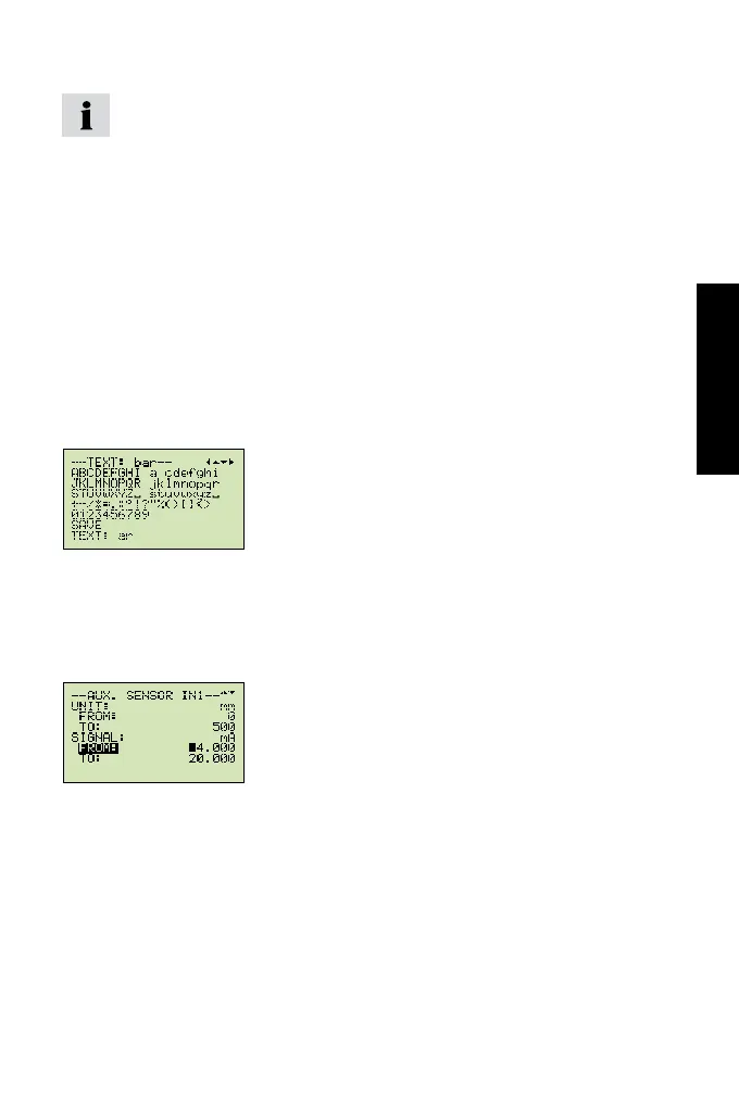 Example: setting the unit (text) and the measurement range (numeri-