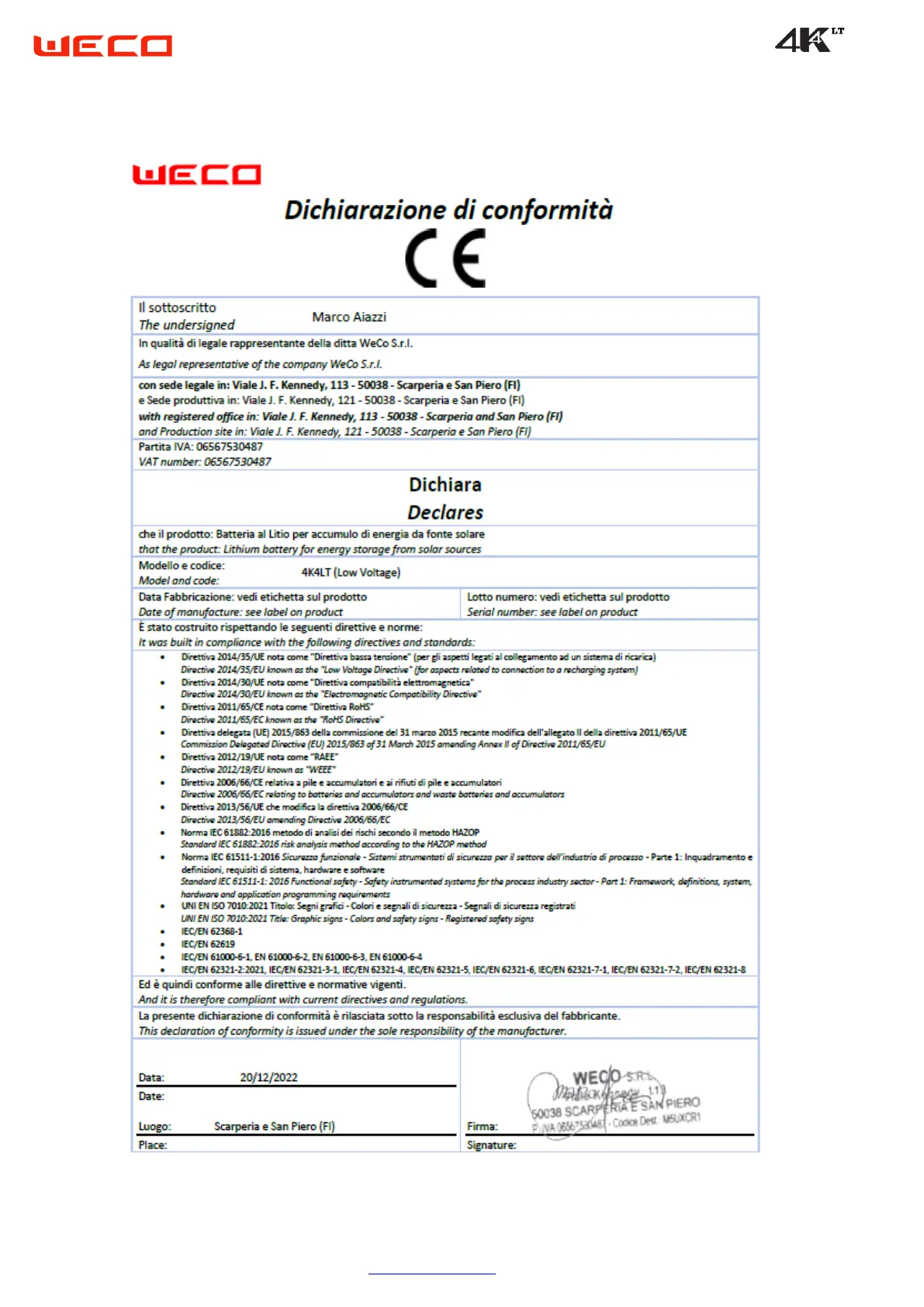 WeCo Srl Italy www.wecobatteries.com 4K4LT V1.00 24/01/2023