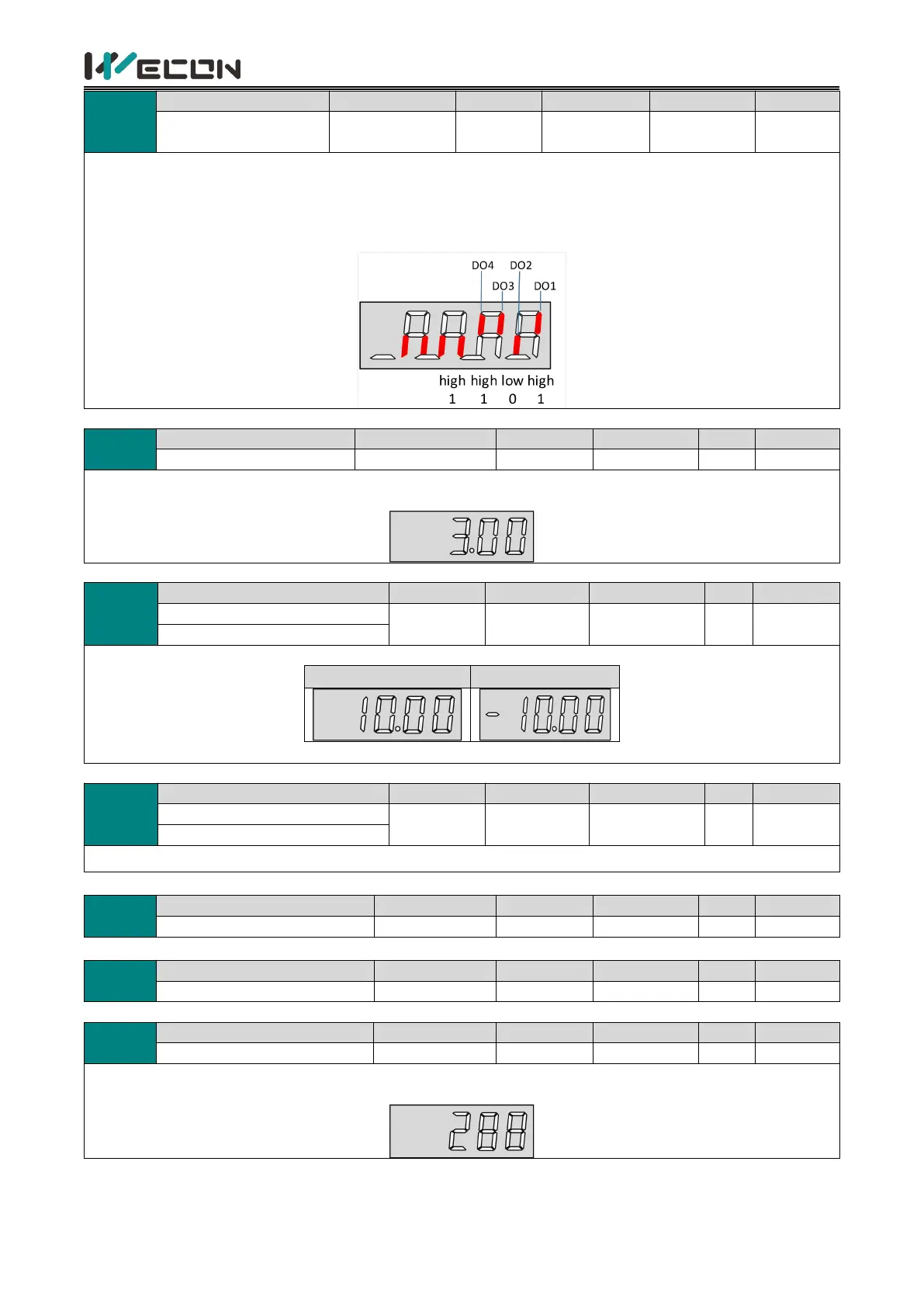 Display the current level status of 4 DO terminals. The upper part of the digital tube of servo drive panel is lit up