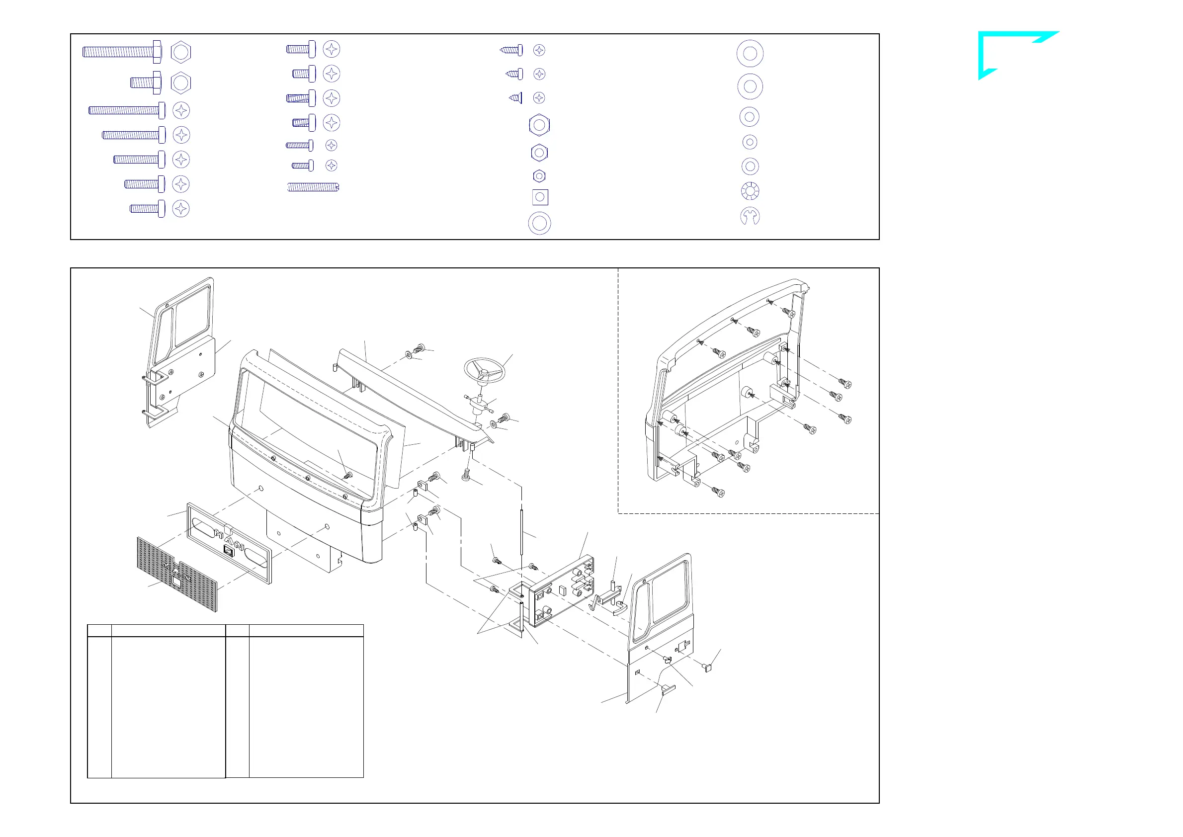 With screw 1 add now the dashboard switch 498 as well as the steer-