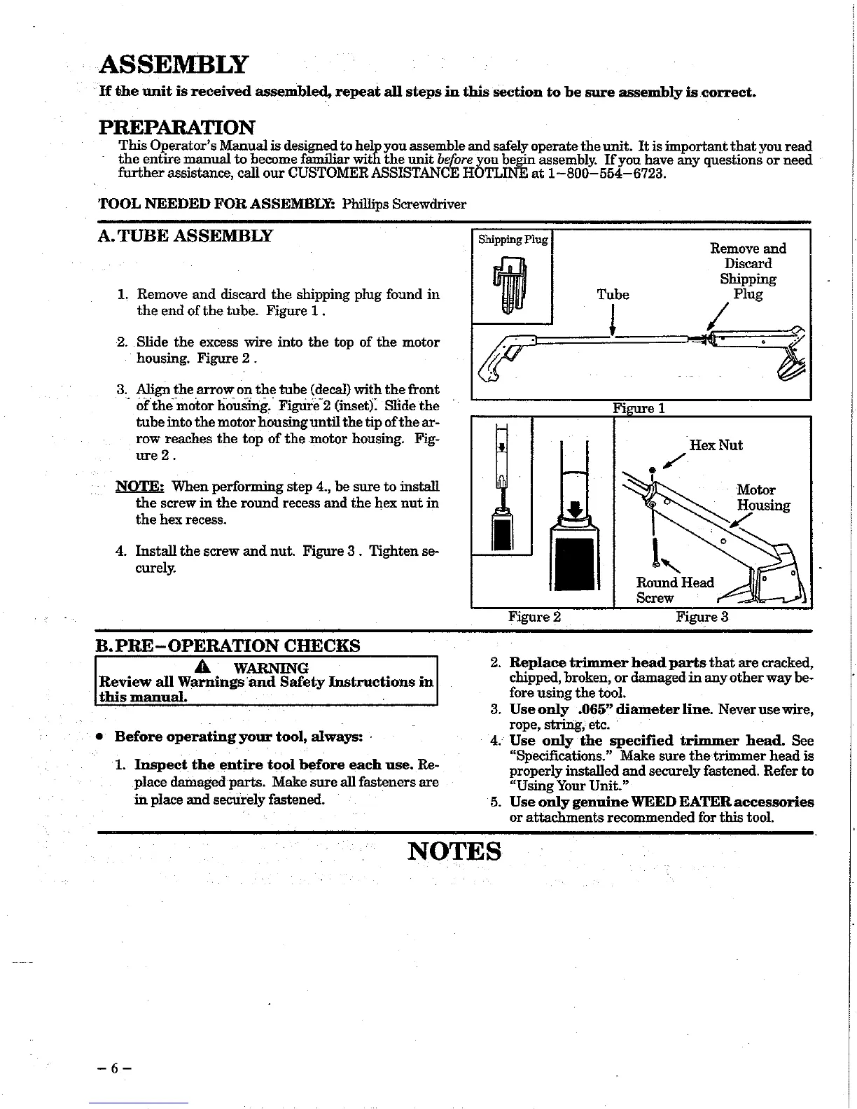 Weed Eater 1209 - Assembly; Preparation and Tube Assembly; Pre-Operation Checks