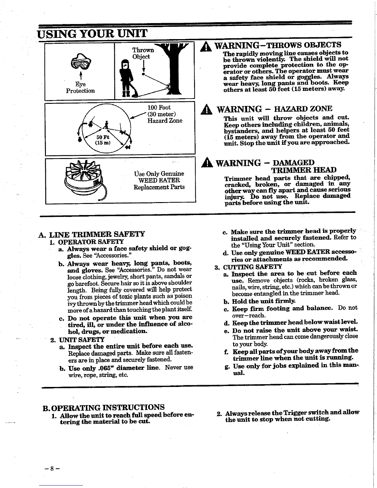 Weed Eater 1209 - Using Your Unit; Line Trimmer Safety; Operating Instructions