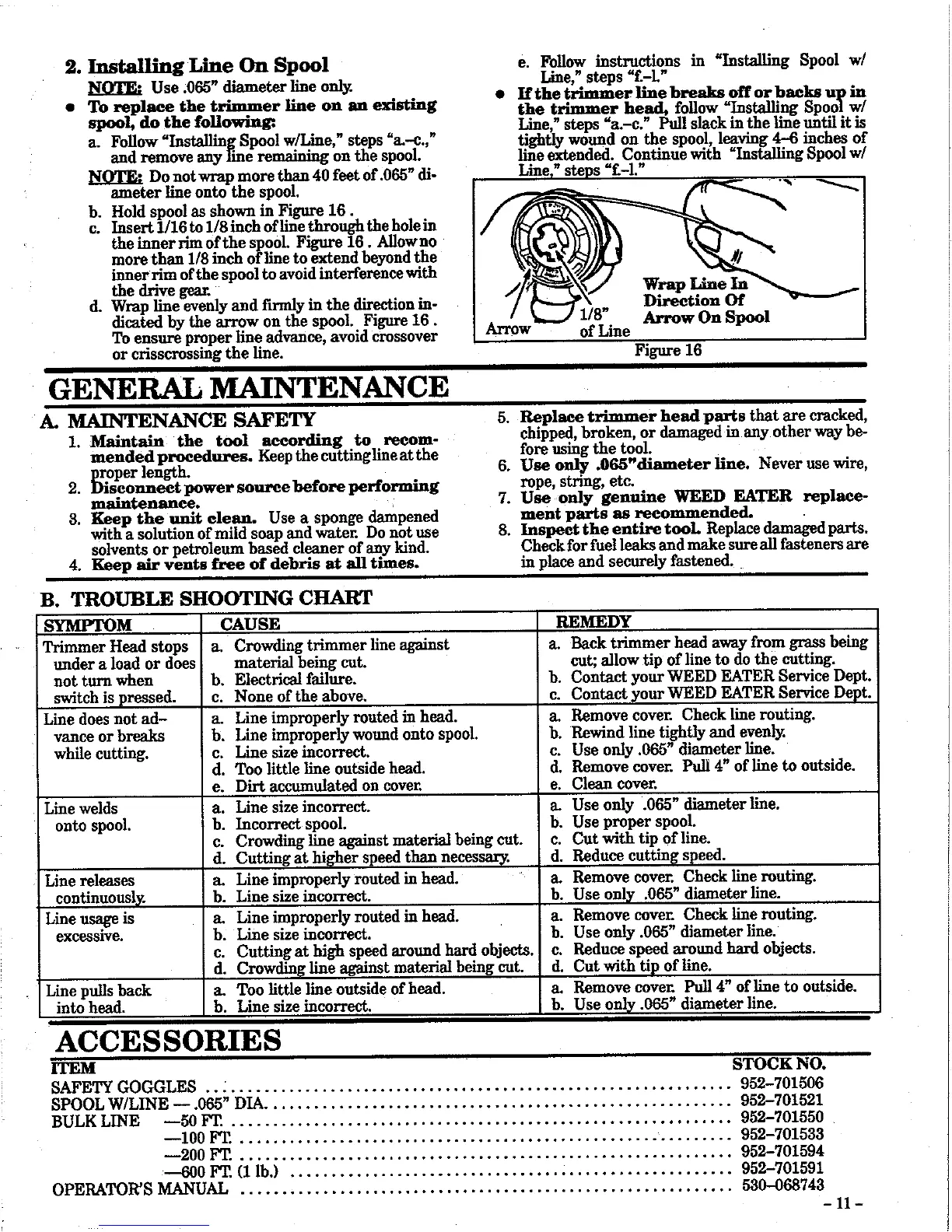 Weed Eater 1210 - General Maintenance and Troubleshooting; Maintenance Safety; Troubleshooting Common Issues