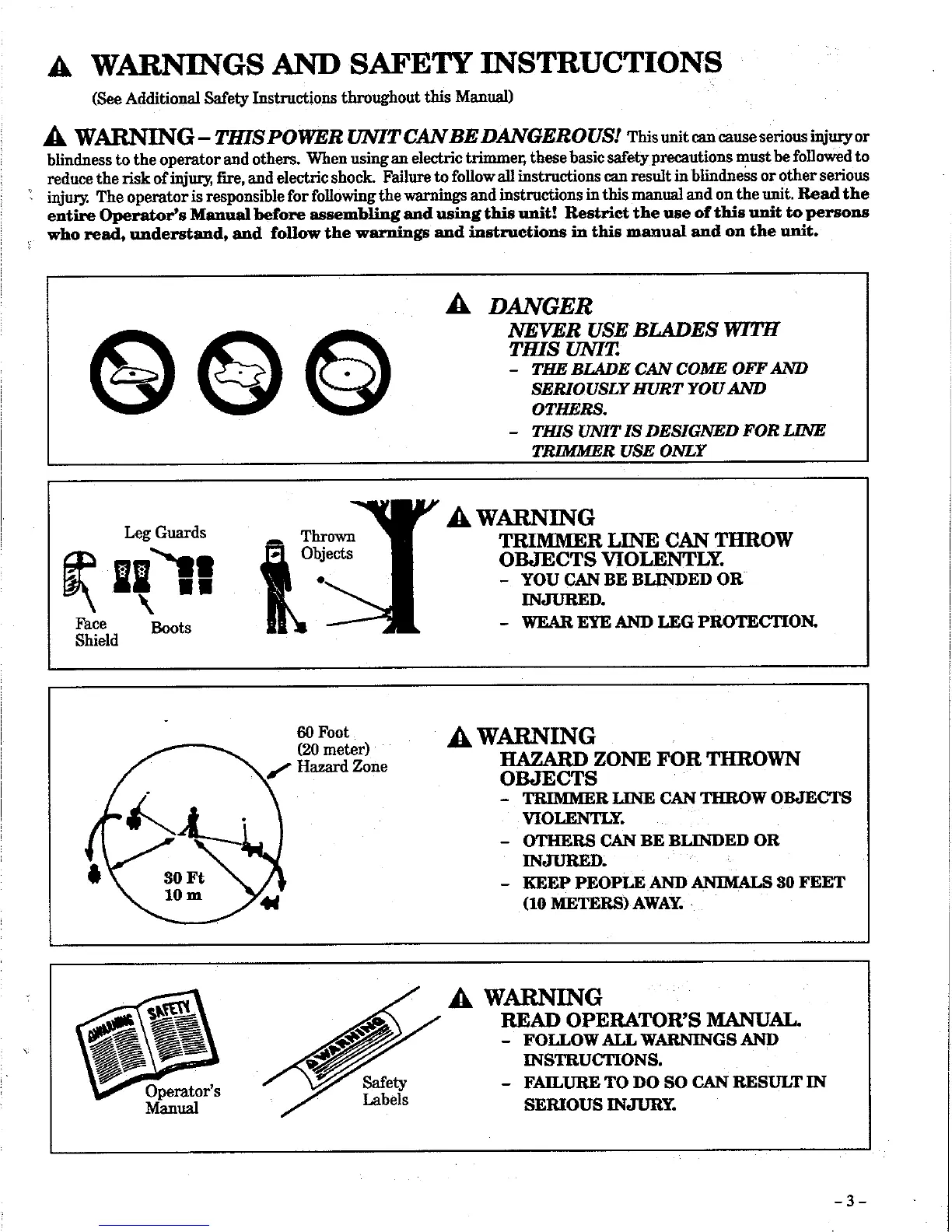 Weed Eater 1210 - Warnings and Safety Instructions; Dangers of Using Blades; Thrown Object Hazards