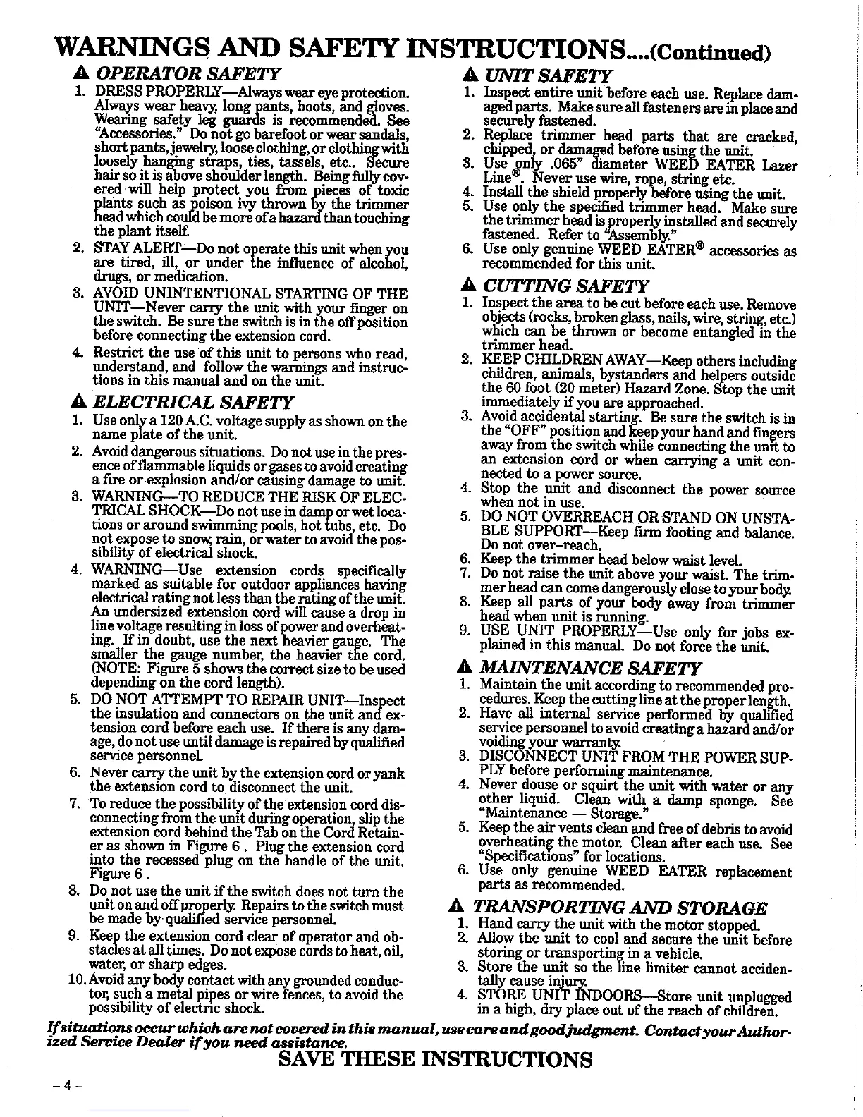 Weed Eater 1210 - Operator Safety Guidelines; Electrical Safety Precautions; Unit Safety Requirements; Cutting Safety Measures