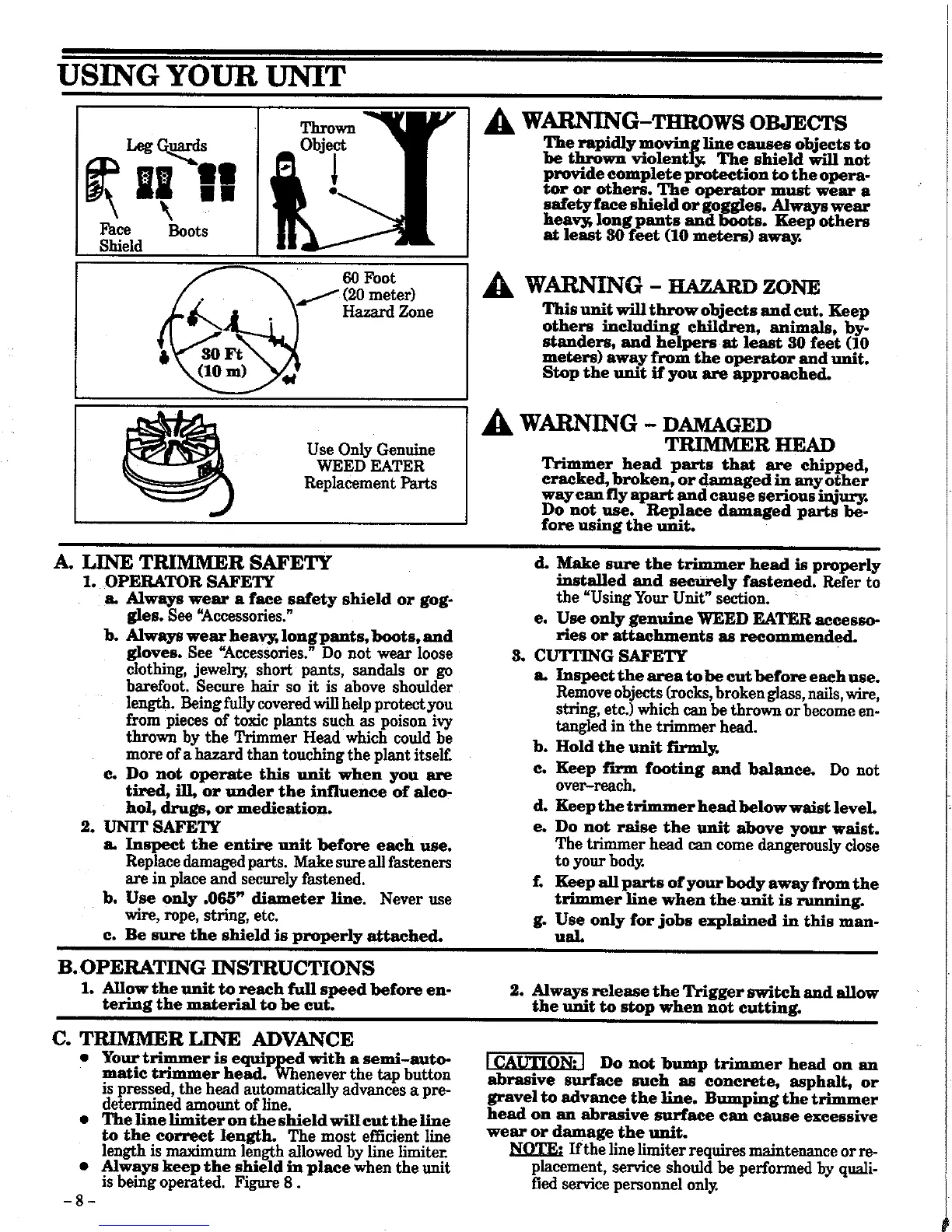 Weed Eater 1210 - Using Your Unit; Line Trimmer Safety; Trimmer Line Advance