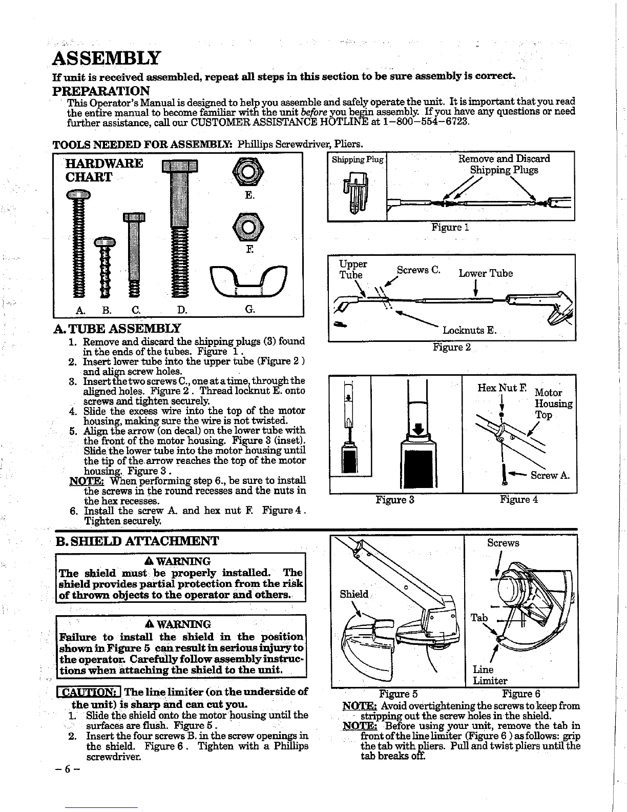 Weed Eater 1212 - ASSEMBLY GUIDE; ASSEMBLY PREPARATION; REQUIRED TOOLS AND HARDWARE; TUBE ASSEMBLY INSTRUCTIONS