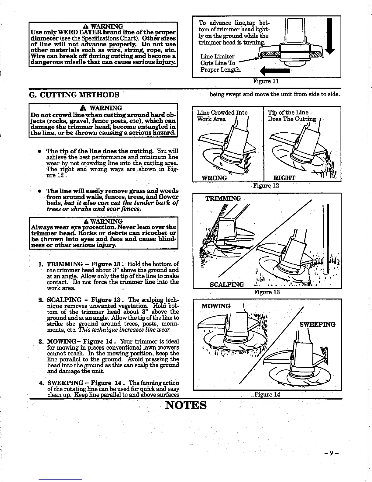 Weed Eater 1212 - CUTTING METHODS; TRIMMING TECHNIQUE; SCALPING TECHNIQUE; MOWING POSITION