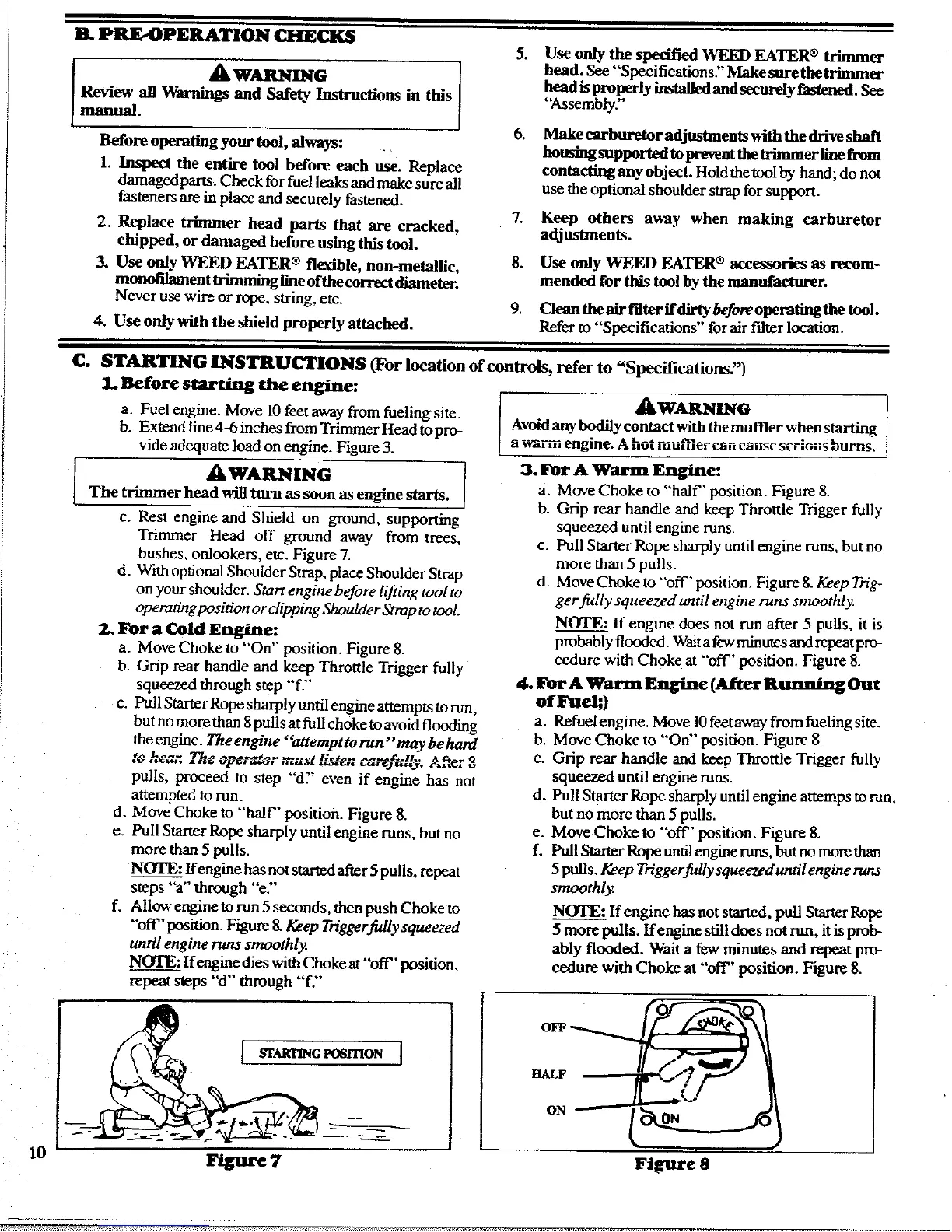 Weed Eater 1400T - PRE-OPERATION CHECKS; STARTING INSTRUCTIONS
