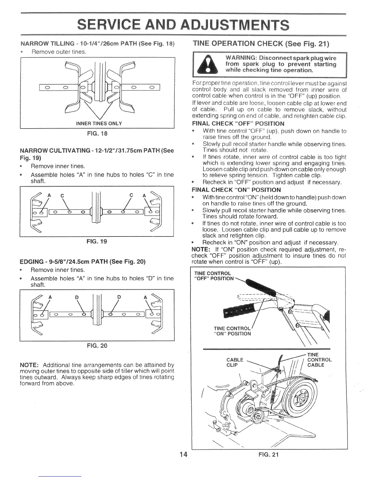 Weed Eater 152166 - Tine Operation Check; Final Check Off Position; Final Check On Position; Edging