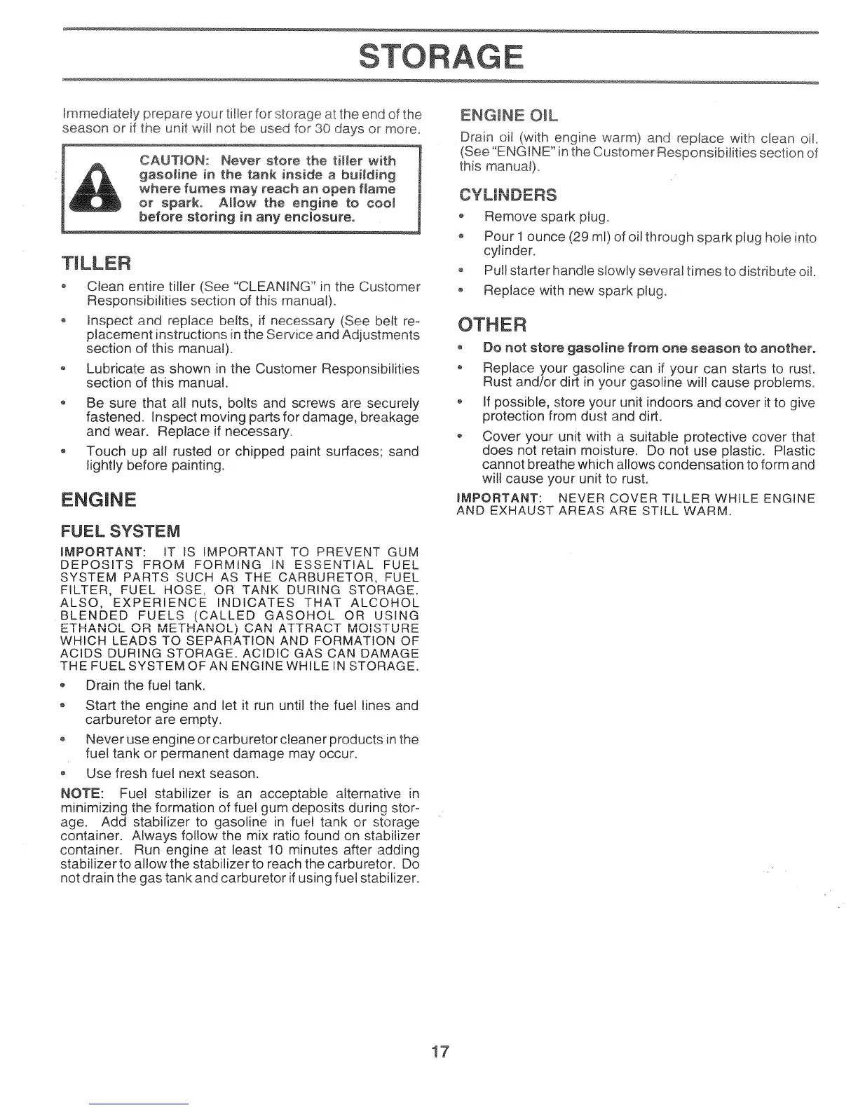 Weed Eater 152166 - Storage; Tiller; Engine Oil