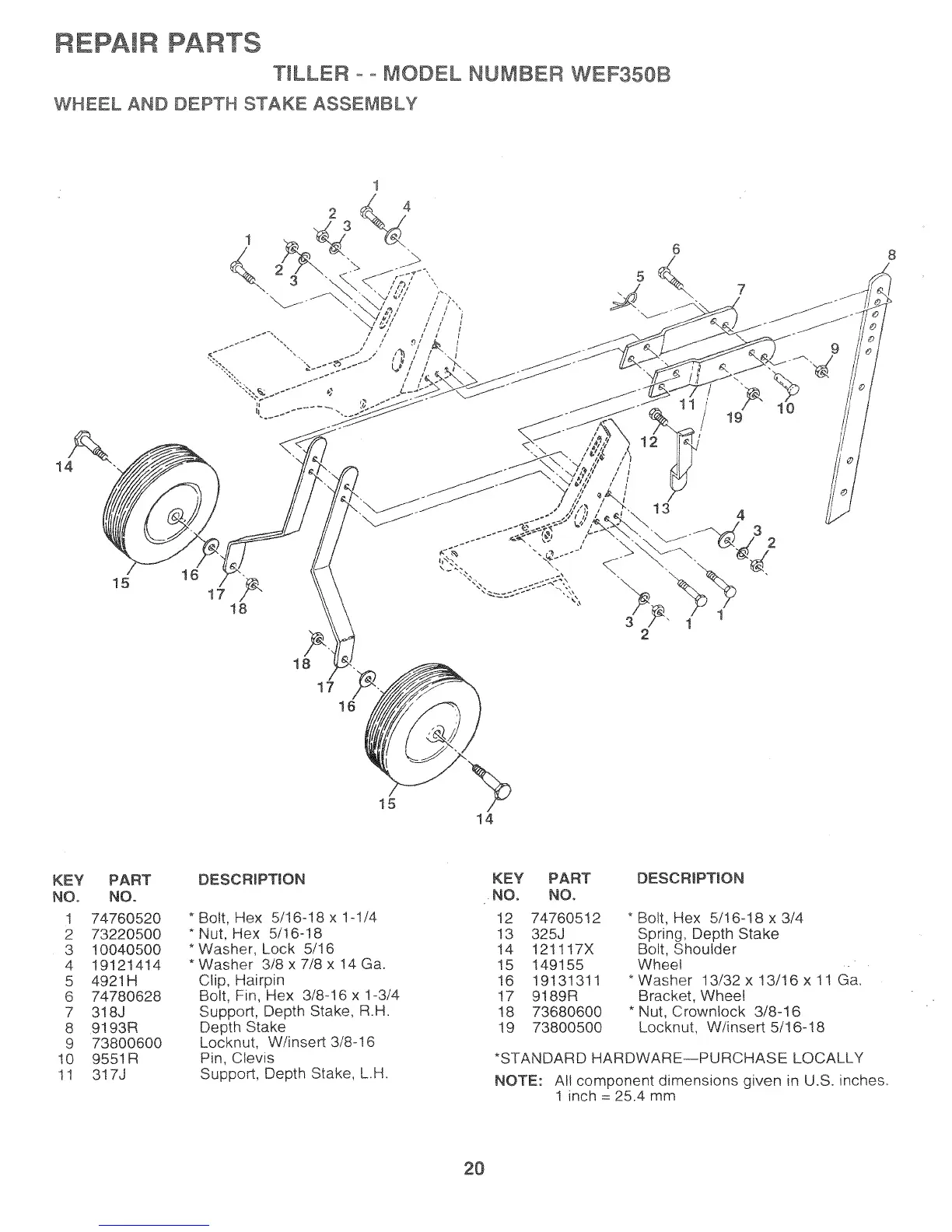 Weed Eater 152166 - Wheel and Depth Stake Assembly
