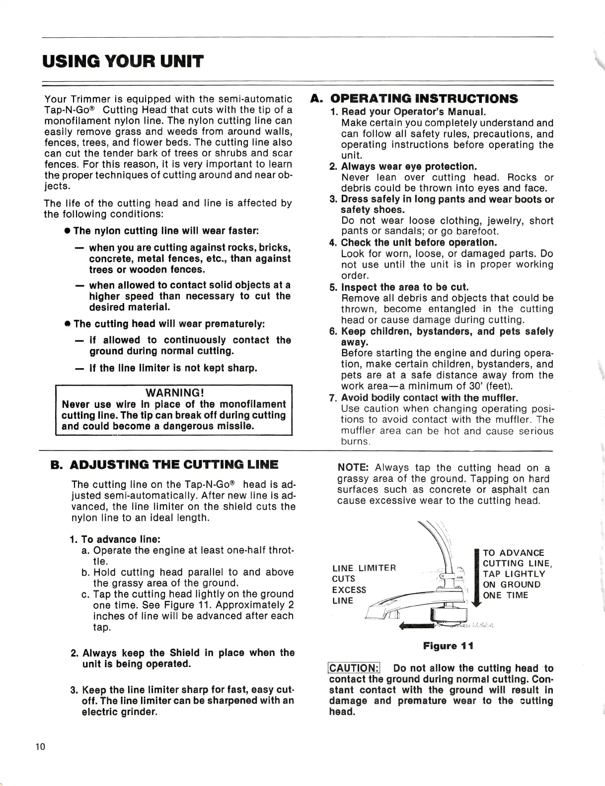 Weed Eater 1700 - Using Your Unit; Operating Instructions; Adjusting the Cutting Line