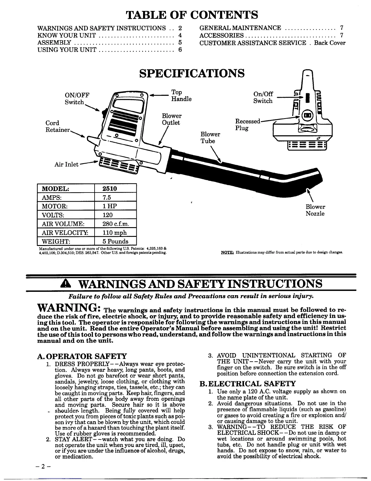 Weed Eater 2510 - Warnings and Safety Instructions; Operator Safety; Electrical Safety