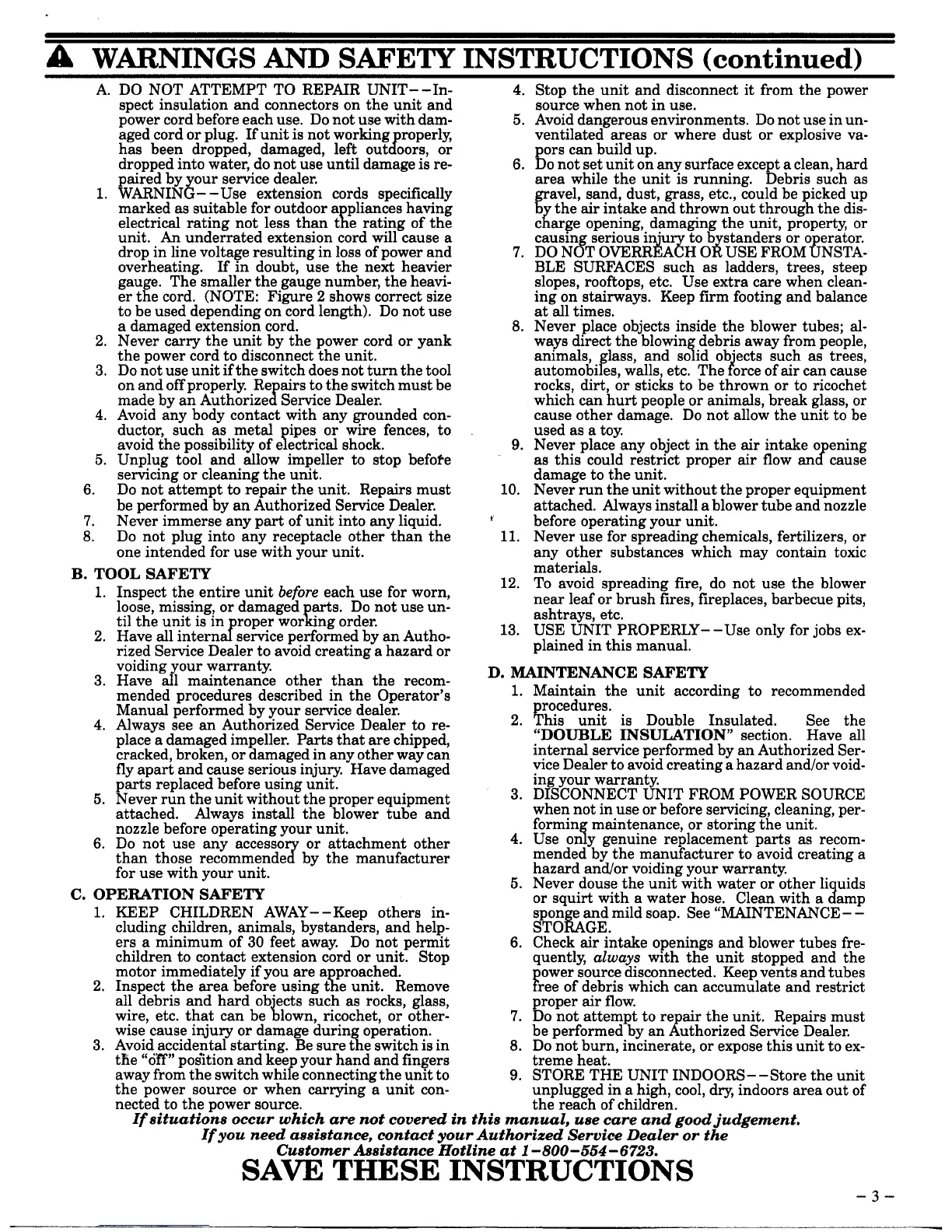 Weed Eater 2510 - Unit Repair and Safety; Tool Safety; Operation Safety; Maintenance Safety