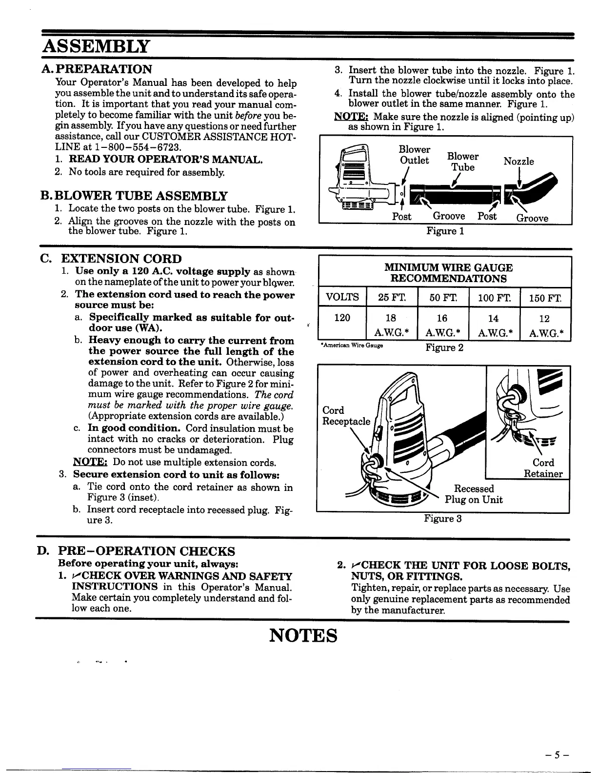 Weed Eater 2510 - Assembly Instructions; Preparation for Assembly; Blower Tube Assembly; Extension Cord Guidelines