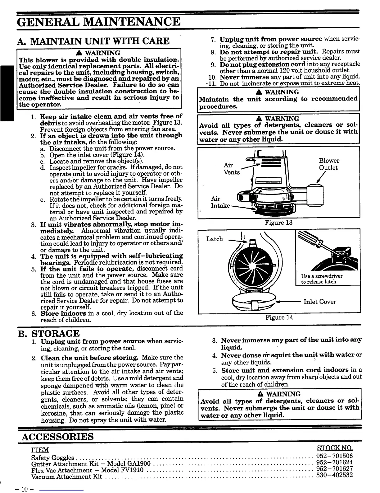 Weed Eater 2540 - GENERAL MAINTENANCE; A. MAINTAIN UNIT WITH CARE; B. STORAGE; ACCESSORIES