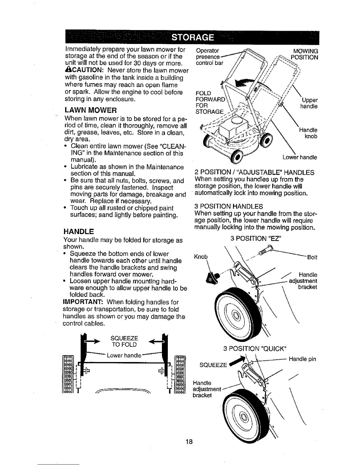storage position, the lower handle will