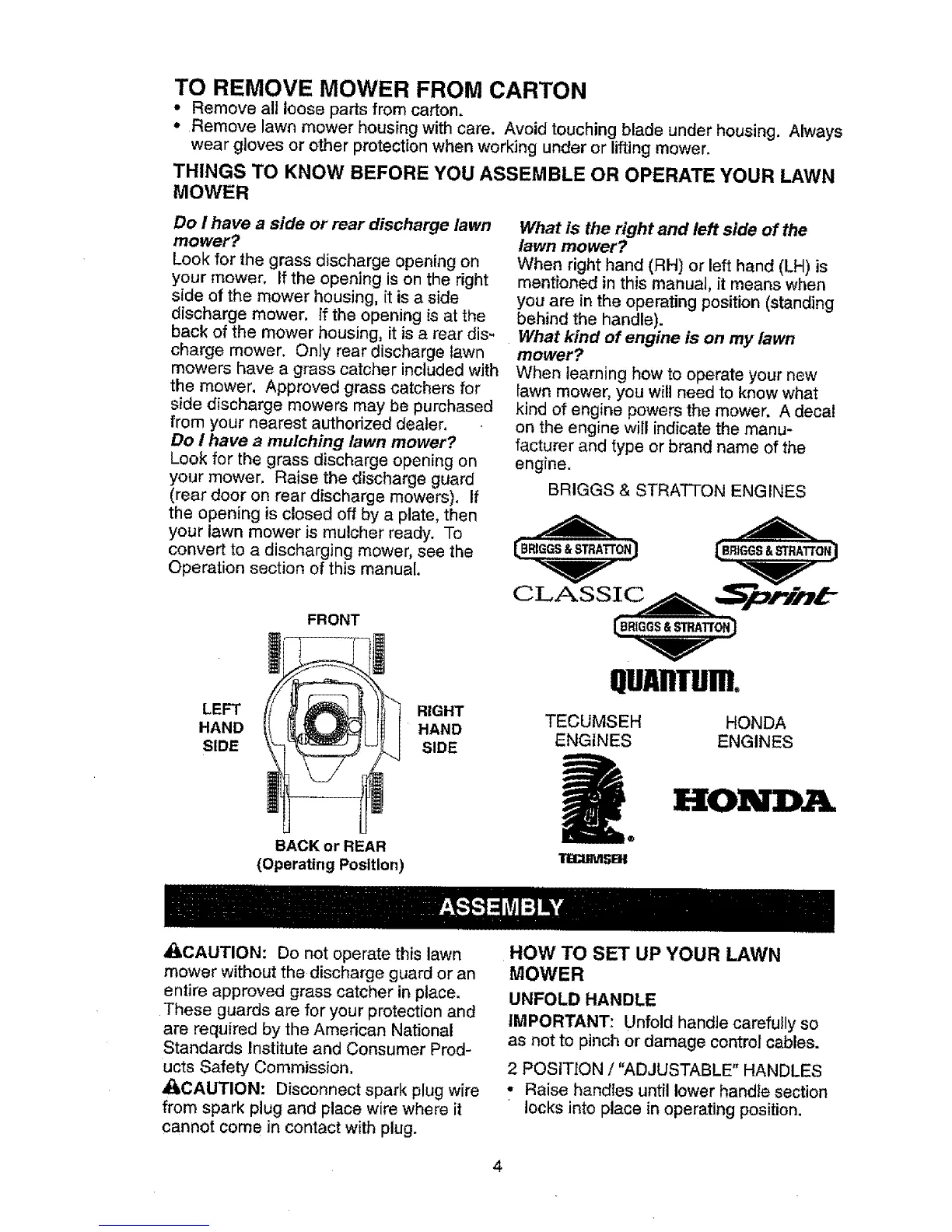 THINGS TO KNOW BEFORE YOU ASSEMBLE OR OPERATE YOUR LAWN