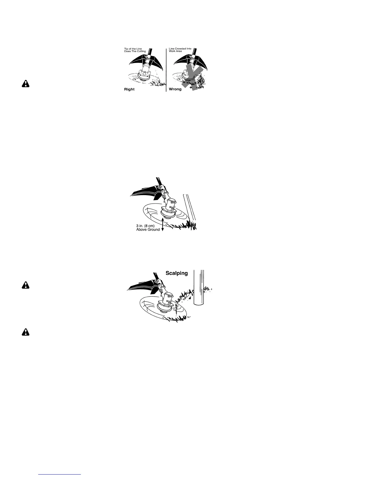 contact. Do not force trimmer line into wor k area.