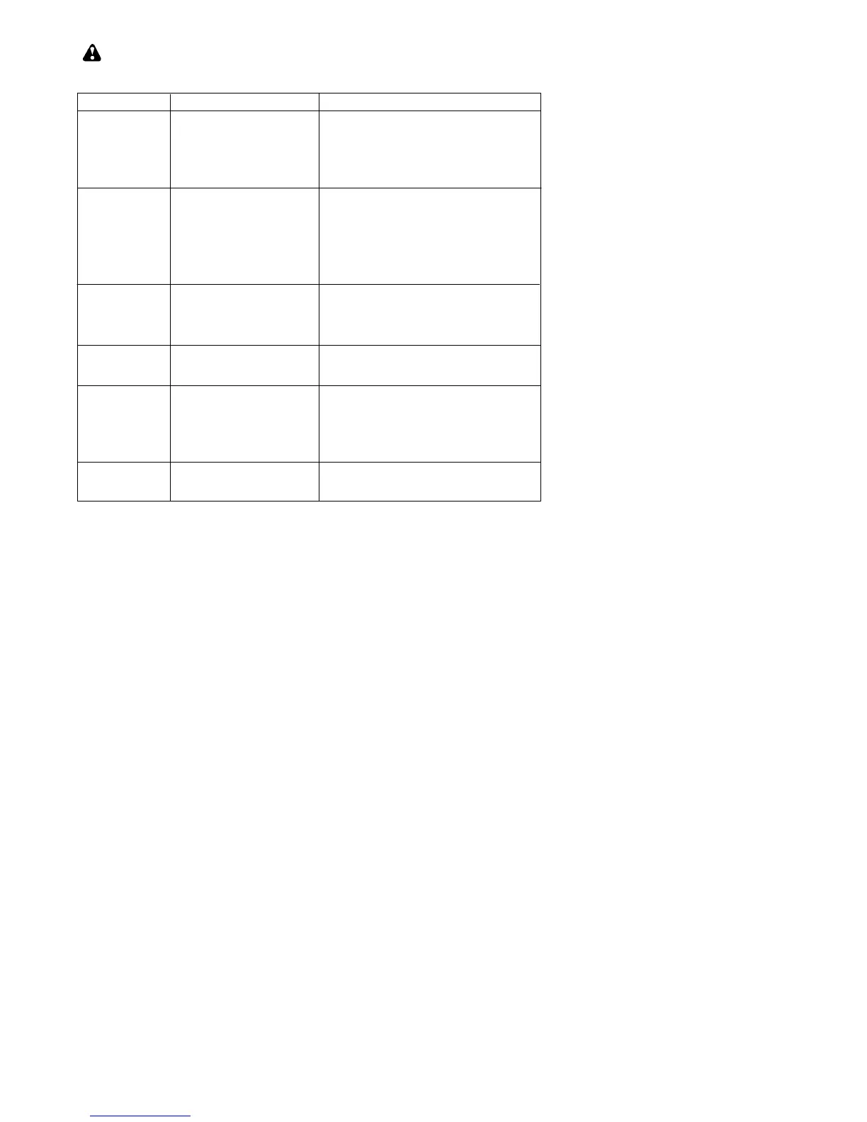 TROUBLESHOOTING TABLE