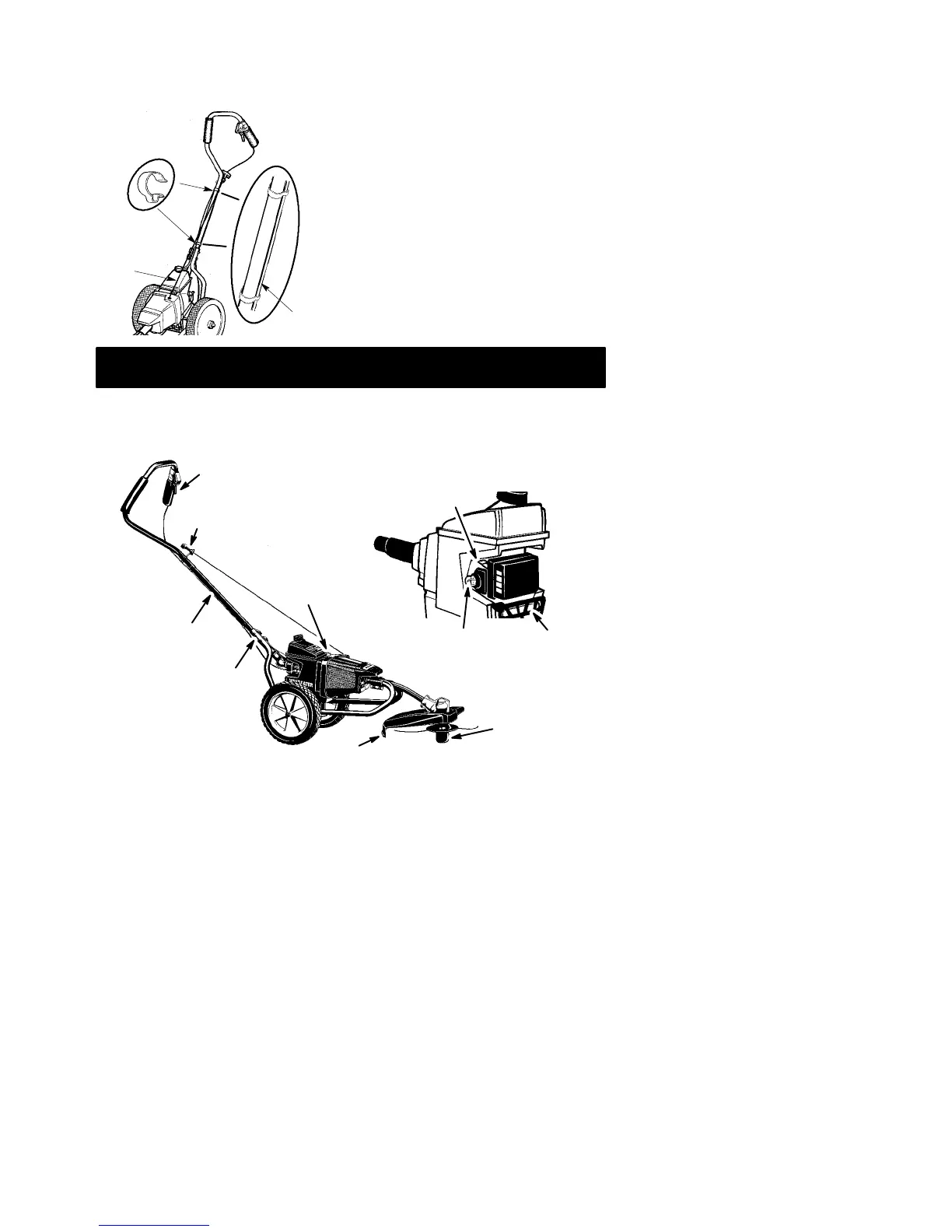 and the other below the starter rope han-