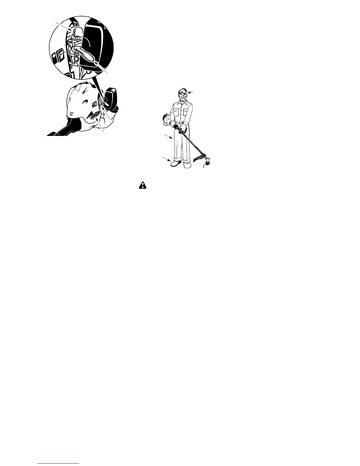 tion. Never lean over the trimmer head.