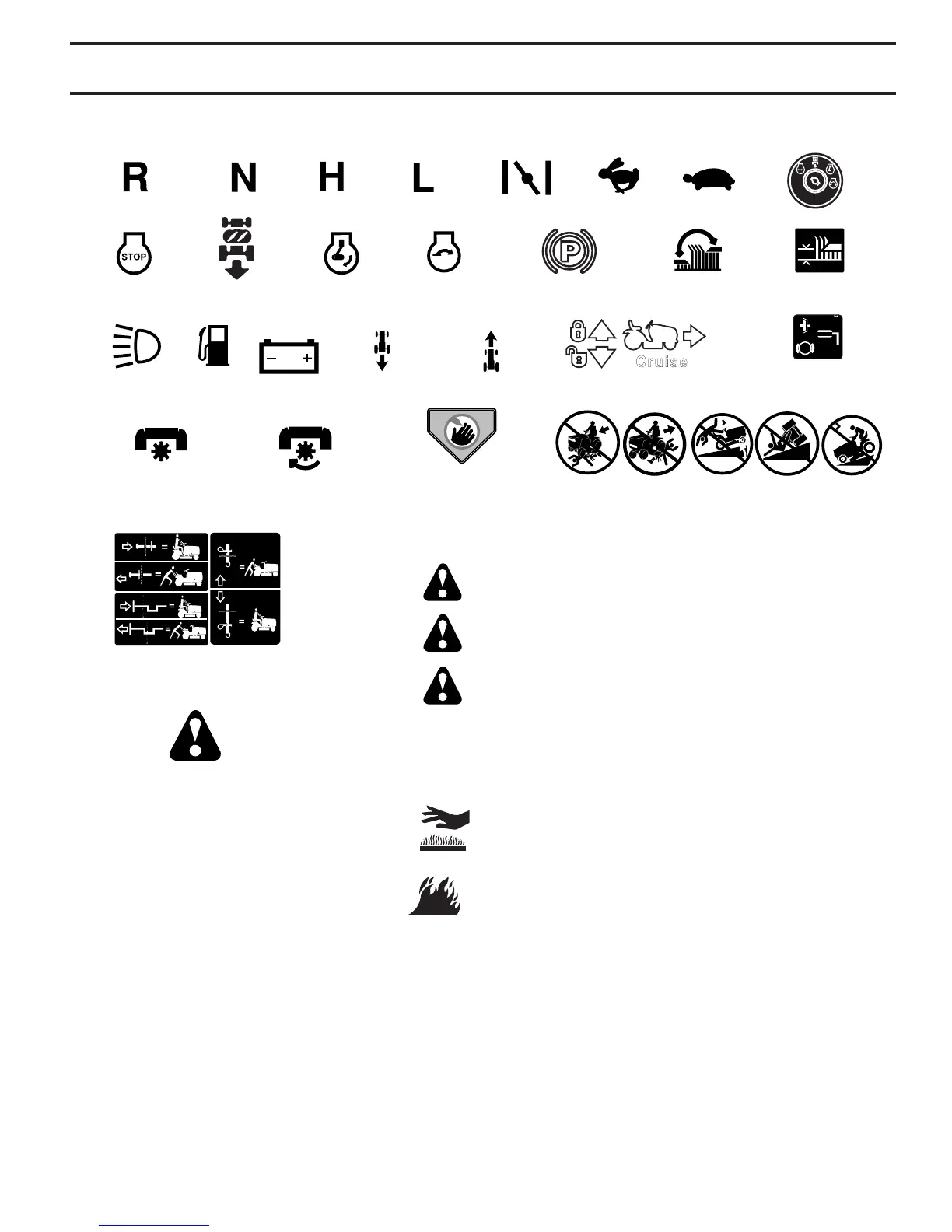 These symbols may appear on your tractor or in literature supplied with the product. Learn and understand their mean-