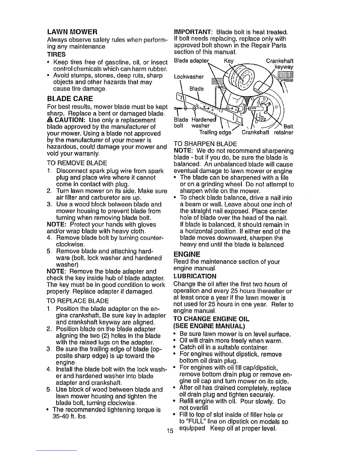 For best results, mower blade must be kept