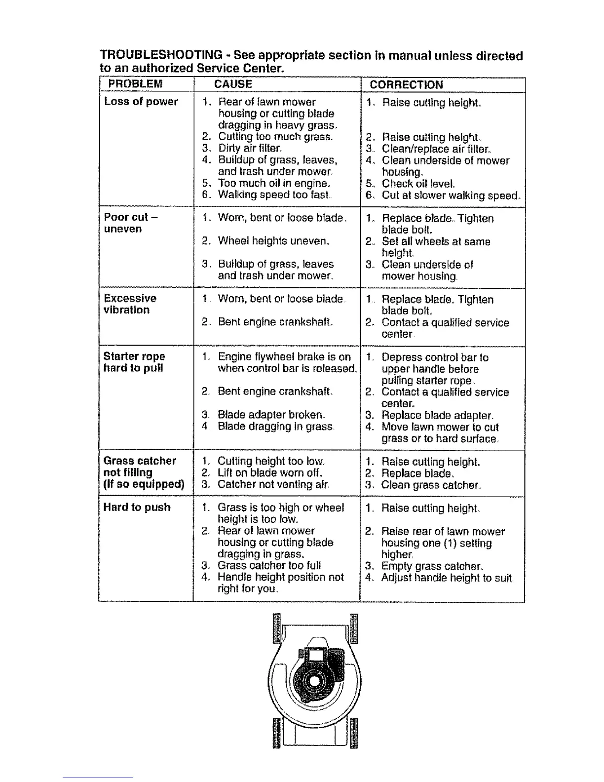 Poor cut- I. Worn, bent or looseblade,