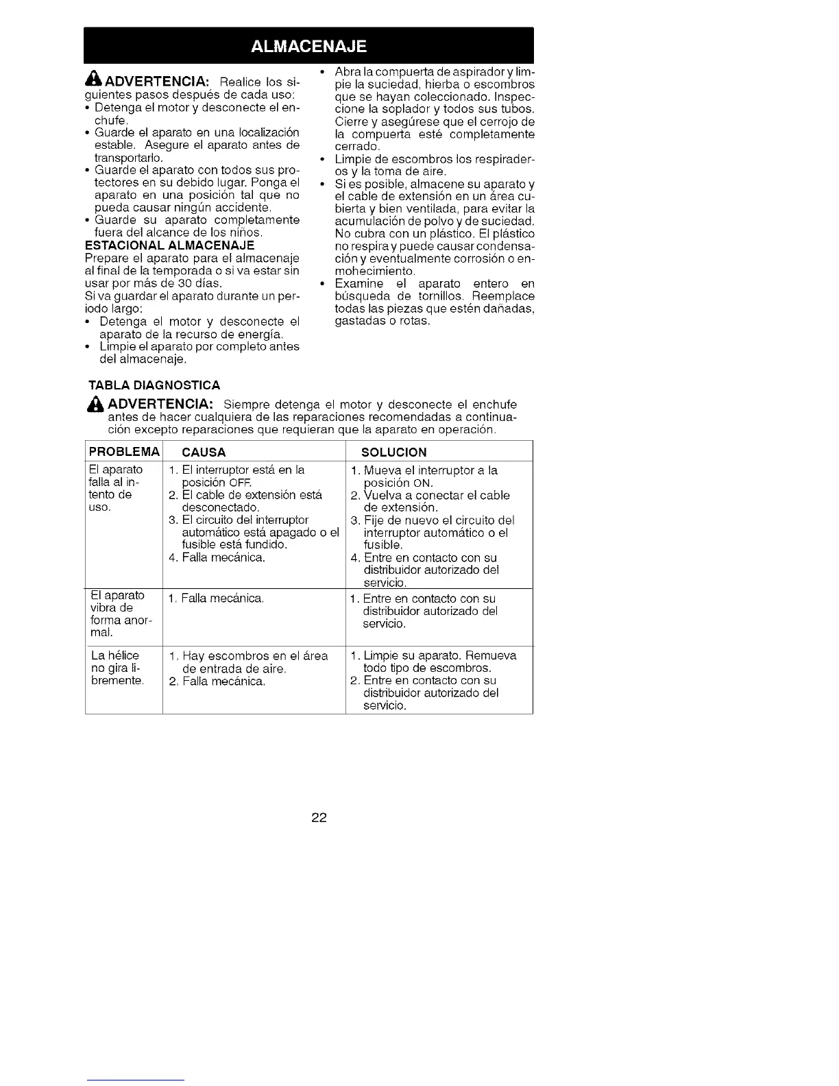 _lk ADVERTENCIA: Siempre detenga el motor y desconecte el enchufe