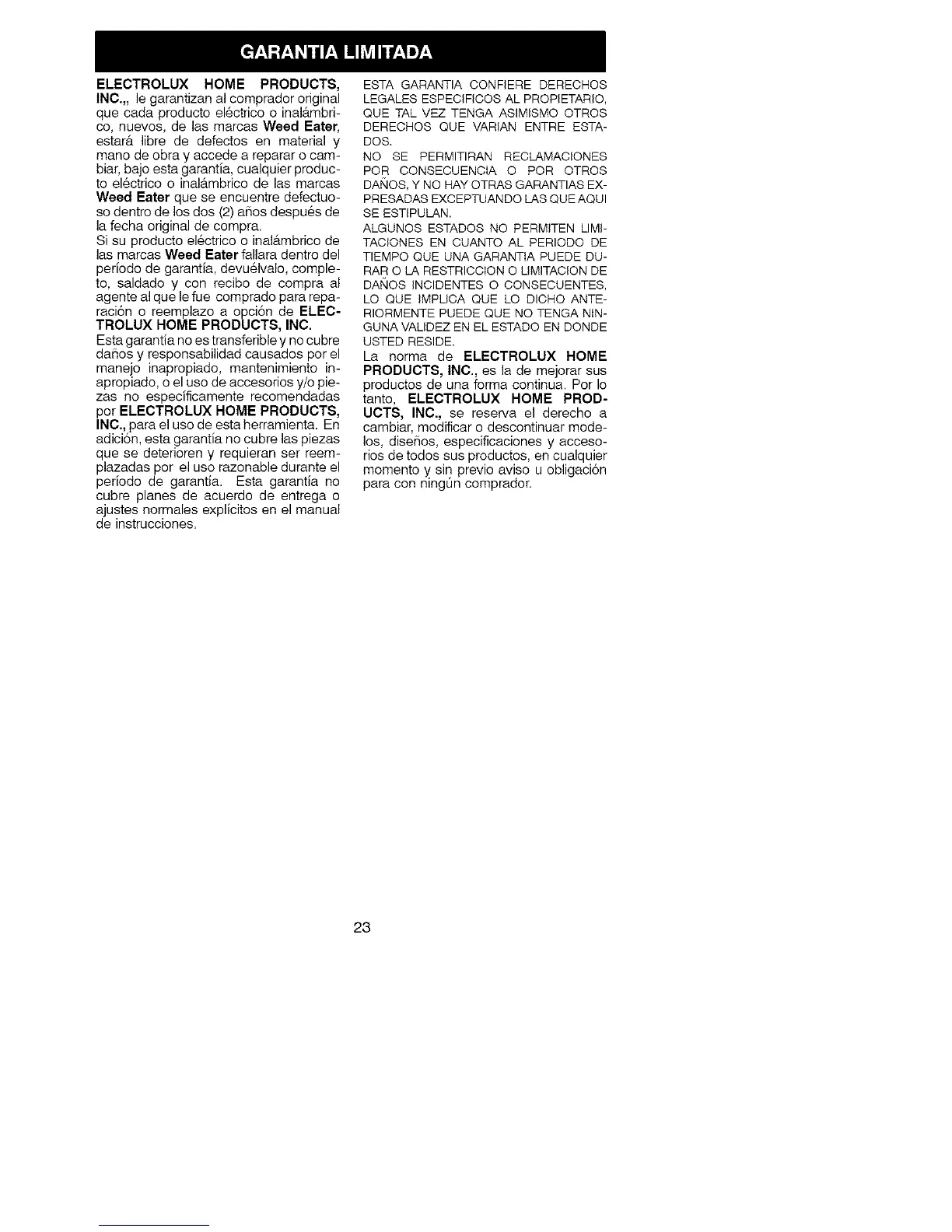 Weed Eater que se encuentre defectuo-