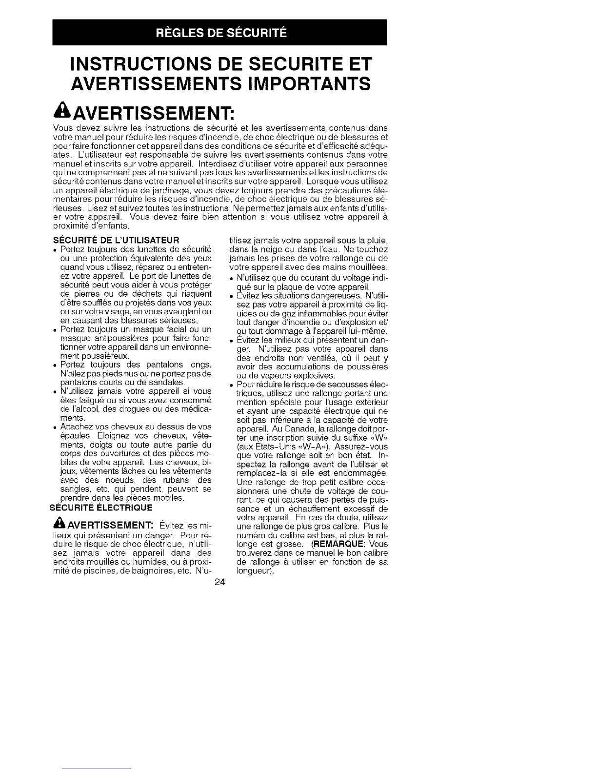 INSTRUCTIONS DE SECURITE ET