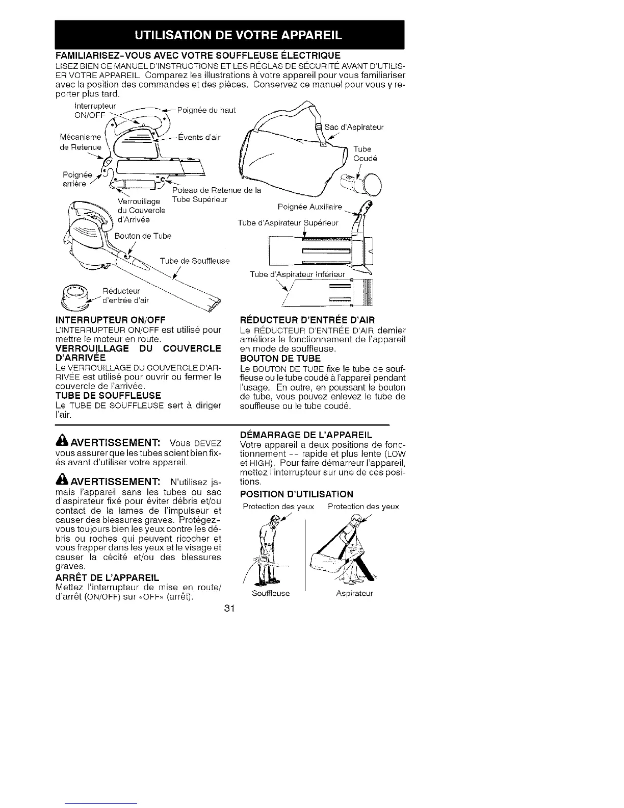 FAMILIARISEZ-VOUS AVEC VOTRE SOUFFLEUSE ELECTRIQUE