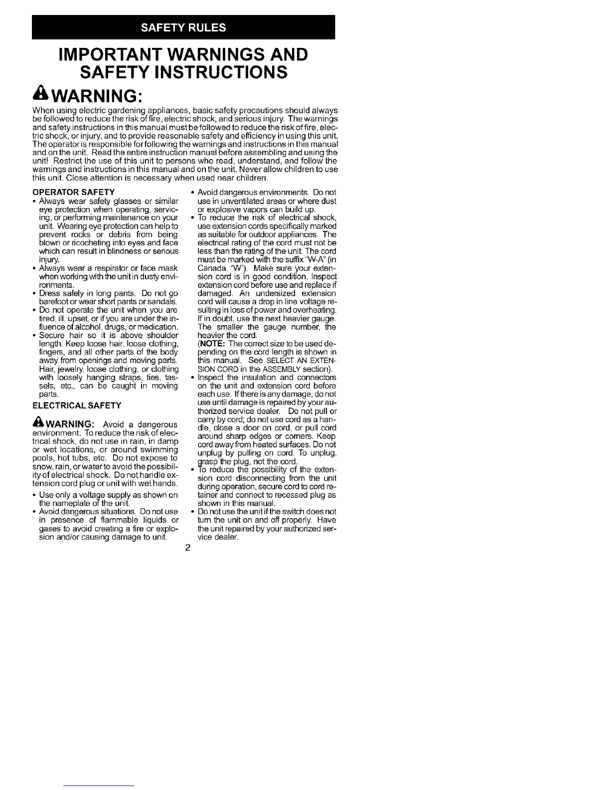tric shock, or injury, and to provide reasonable safety and efficiency in using this unit.
