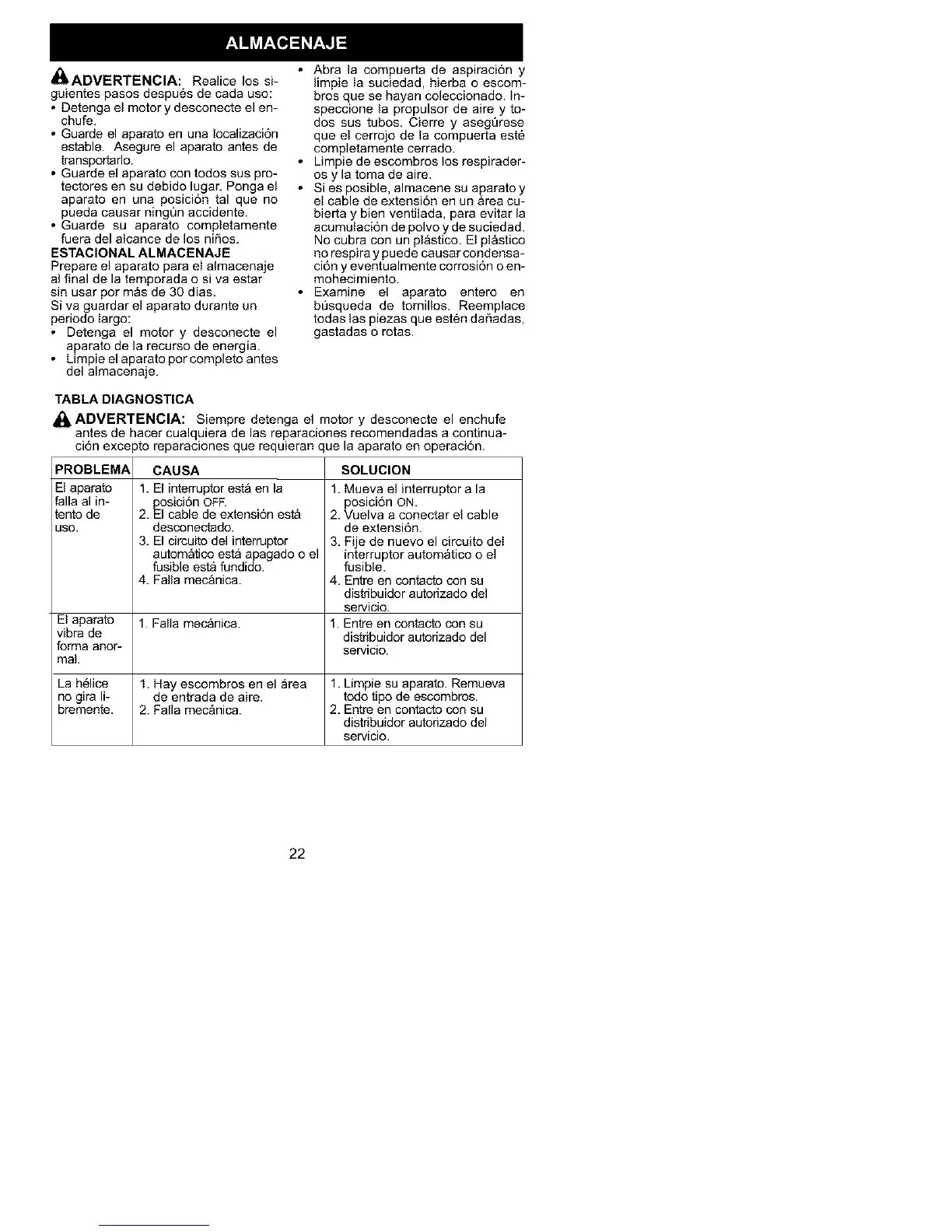 _1_ ADVERTENCIA: Siempre detenga el motor y desconecte el enchufe