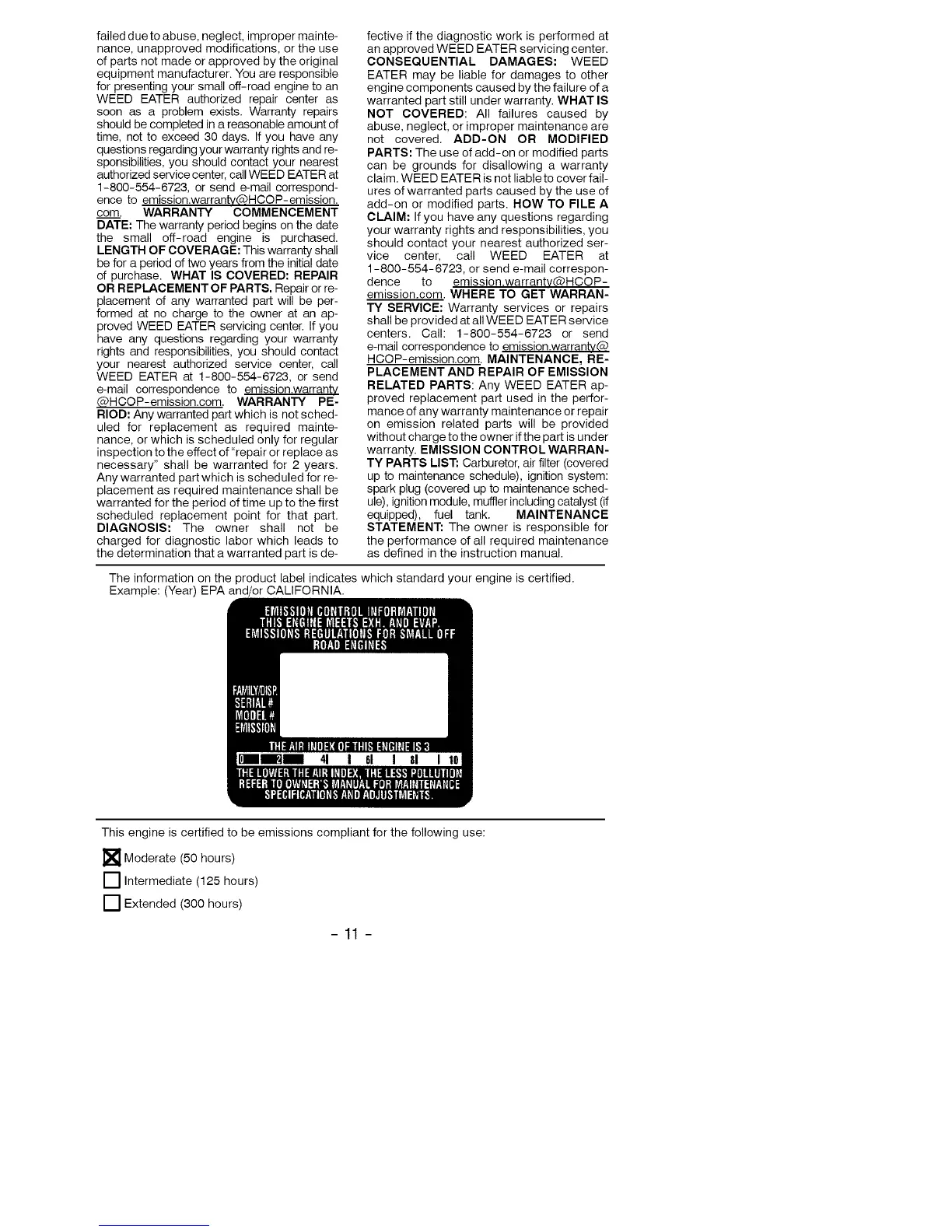 warranty. EMISSION CONTROLWARRAN-