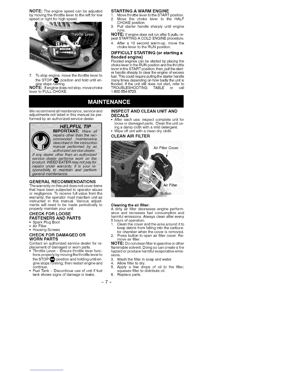 7. To stop engine, move the throttle lever to