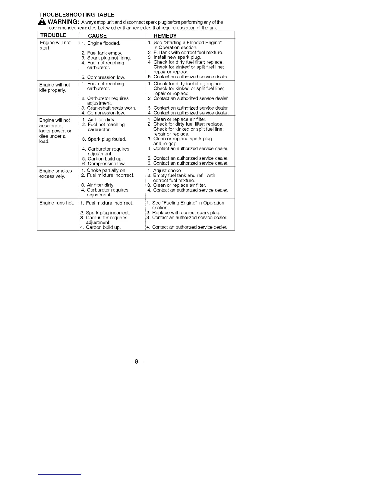 ,_/LWAR NIN G: Always stop unit and disconnect spark plug before performing any of the