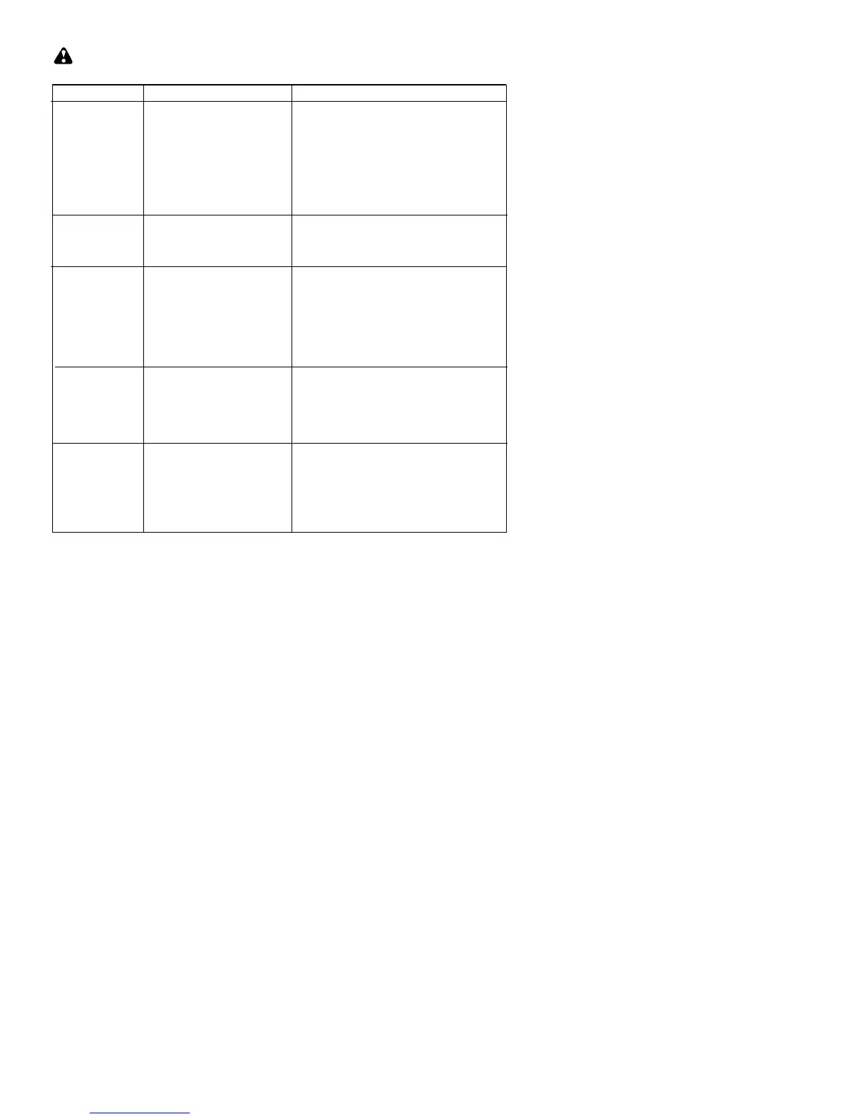 TROUBLESHOOTING TABLE