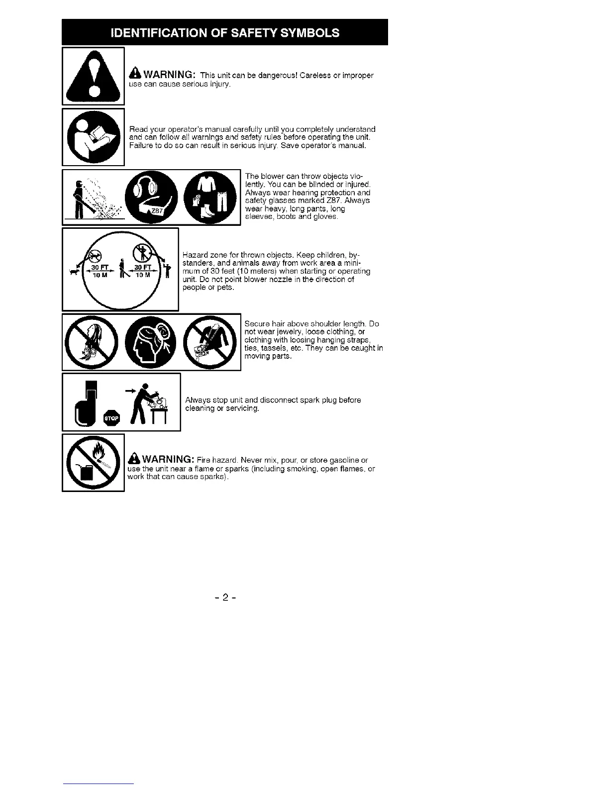 "-_J_ ] Always stop unit and disconnect spark plug before