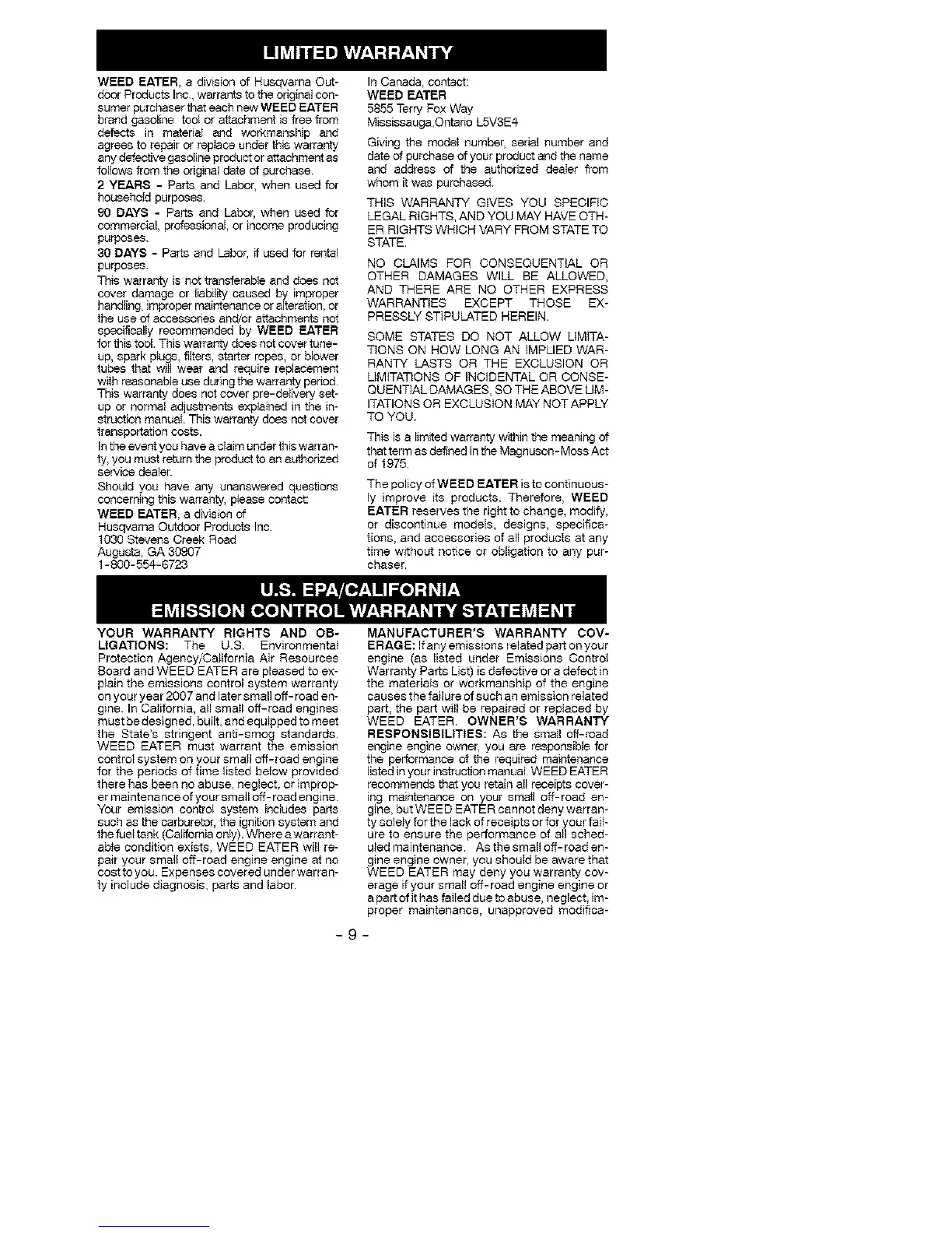 WEED EATER must warrant the emission