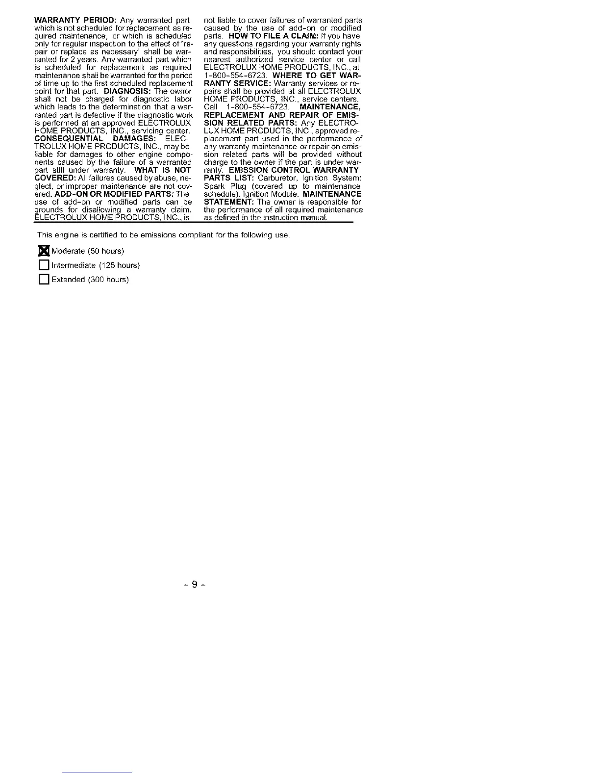 ranty. EMISSION CONTROL WARRANTY