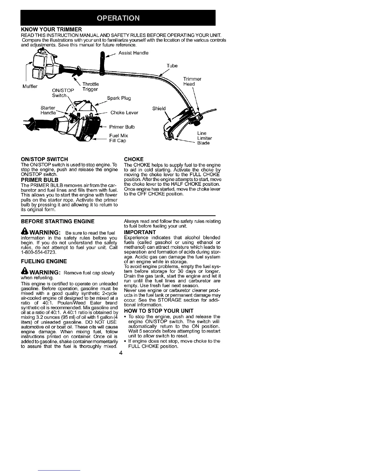 ratio of 40:1. Poulan/Weed Eater brand