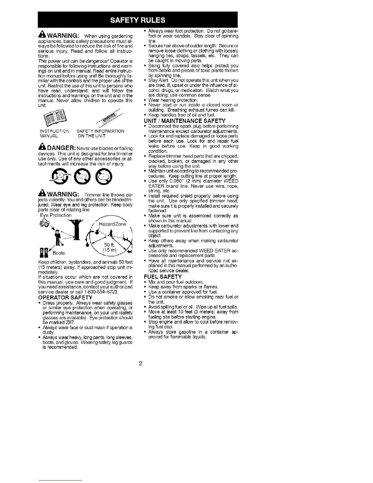 • Use only recommended WEED EATER ac-