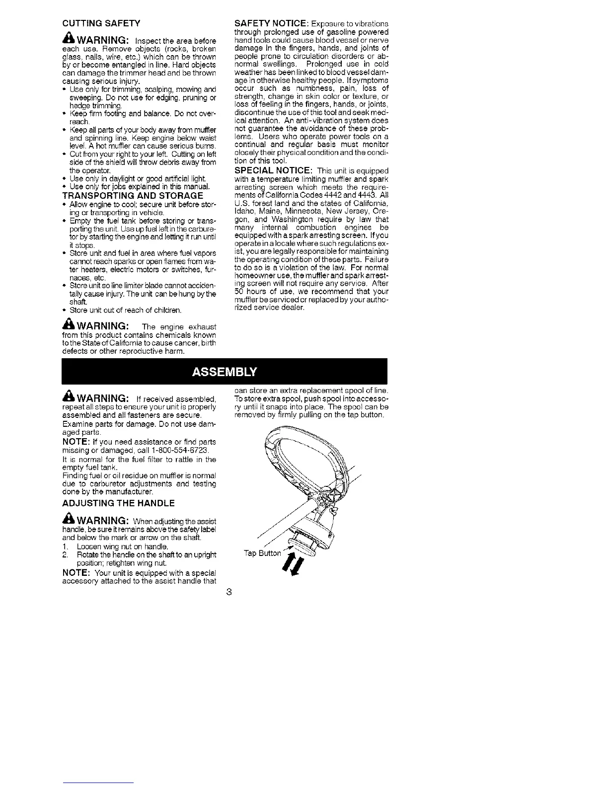 handle, be sure it remains above the safety label