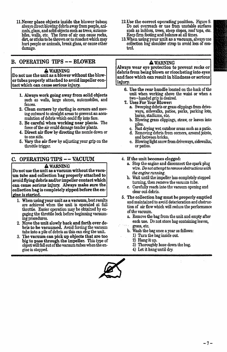Weed Eater GBI 22V - Operating Tips - Blower; Operating Tips - Vacuum