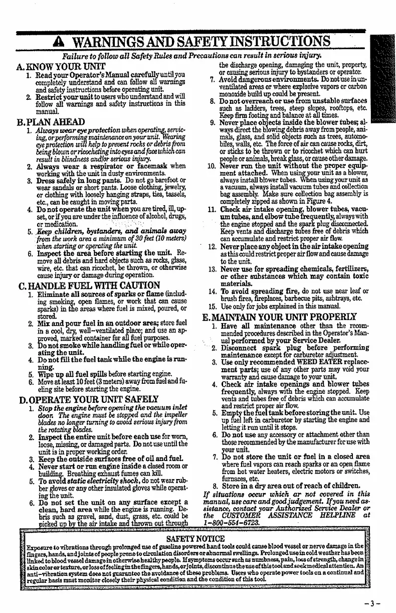 Weed Eater GBI 30V - Safety and Warnings; Handle Fuel with Caution; Operate Your Unit Safely; Maintain Your Unit Properly