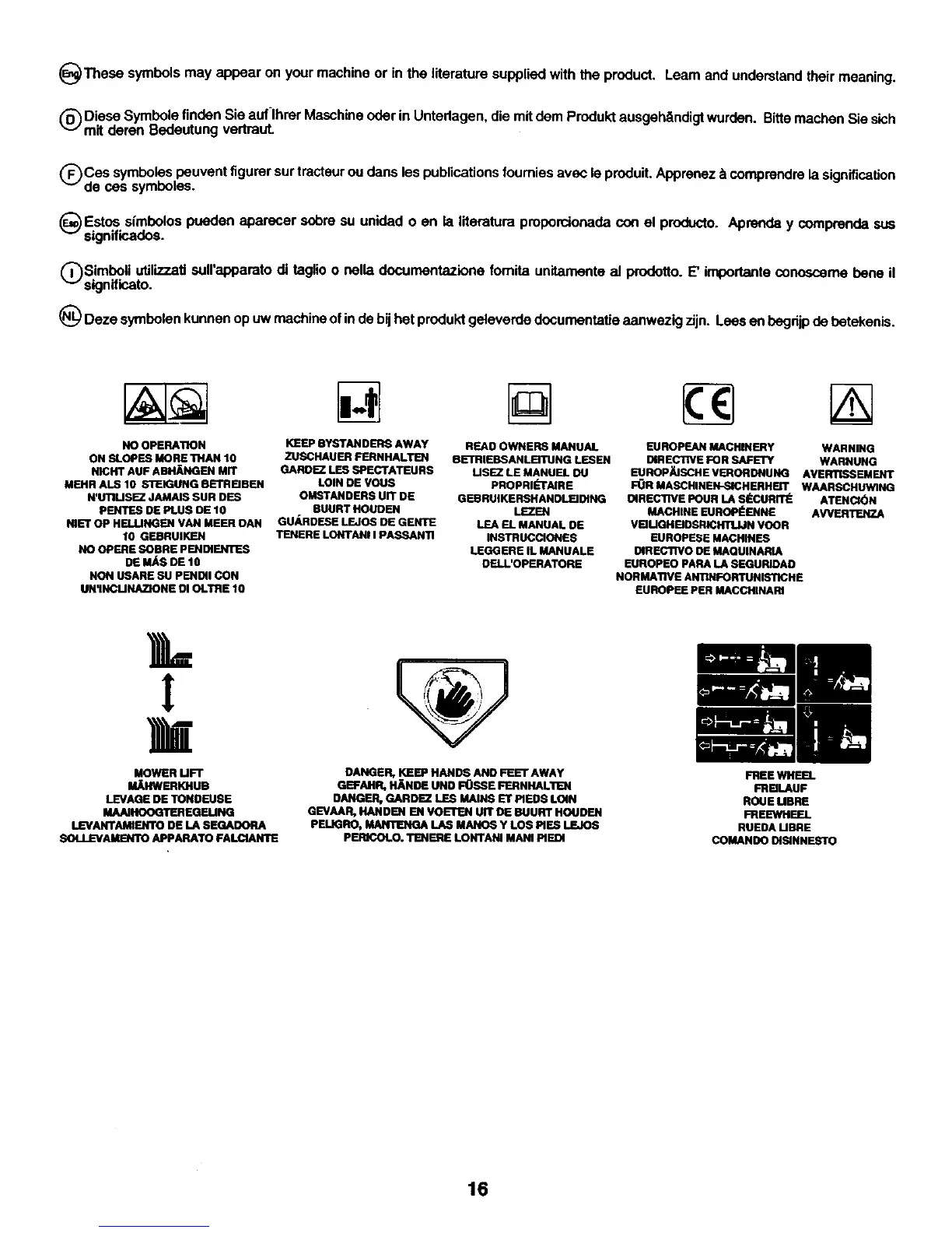 (_) Diese Symbole linden Sie auflhrer Maschine oder in Unterlagen, die mit dem Produkt ausgeh&ndigt wurden. Bitte machen Sie sich